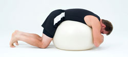 - Lie over the stability ball with your knees and hands on the ground.