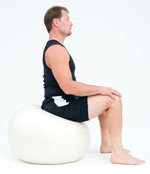 - Sit on the ball with your hands resting on the side of the ball.