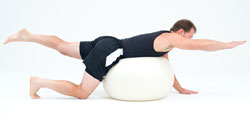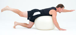 - Once balanced and secure on the ball, reach out your right hand/arm and left foot/leg.