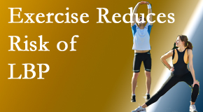 Exercise works to thwart low back pain in most adults. The 12,721 patient study (NHANES) evaluated those who did no muscle strengthening activity, did it only one day a week, or did it two days weekly. The outcome: exercising with muscle strengthening activities at least (or rather just) 2 days a week reduces the risk of low back pain. (Side note: Smoking impacts this. Recommendation: Do not smoke.) (1) Aurora Chiropractic Center knows our Juneau chiropractic patients can squeeze in a couple times a week for some exercise like this to decrease the risk of low back pain!