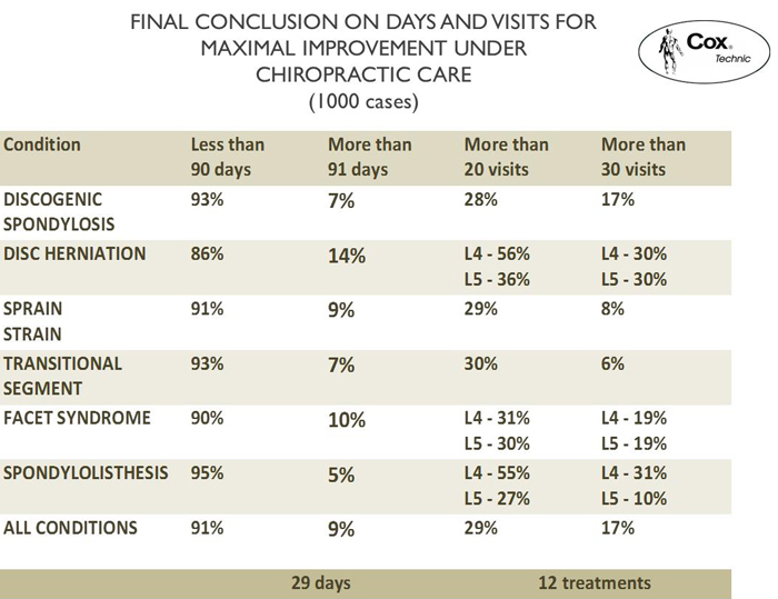 - The amount of visits and days to gain relief of these conditions, regardless of the individual diagnosis, was found.