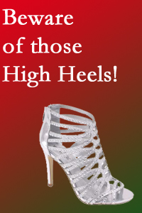 They are a fashion statement, yes, especially this time of year! Wearing them increases the flexion of knees and ankles and even affects the curve of the neck since the body’s center of gravity is off! High heel wearers tend to report neck pain, low back pain and knee pain when they wear high heels a lot. (7) Aurora Chiropractic Center appreciates the beauty of these shoes but also wants to forewarn our Juneau females of their disadvantages…and invite you to see Aurora Chiropractic Center when they bother your spine! Our Cox Technic spinal manipulation is gentle and relieving!