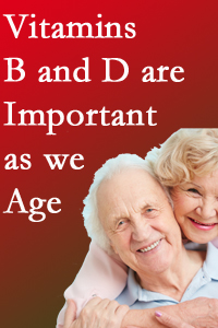 Vitamins B and D influence diseases that often come with aging. Low levels of Vitamin D may be a risk factor for Alzheimer’s Disease. (8) Taking NSAIDS for low back pain often cause adverse effects which can be counteracted by adding B-group vitamins - artrozan (meloxicam) and cyanocobalamine (B-group vitamin complex - to the treatment plan. (9) B-vitamins are garnering much interest from researchers. Low levels of folate and related B-vitamins (and/or high levels of homocysteine) point to higher levels of degenerative diseases like cardiovascular disease, cognitive dysfunction, and osteoporosis. The good news is if B vitamins are supplemented, they seem to have a preventative effect. (10) That’s what Juneau chiropractic care is all about at Aurora Chiropractic Center – prevention whenever possible! We can help set up a nutrition plan just for you.